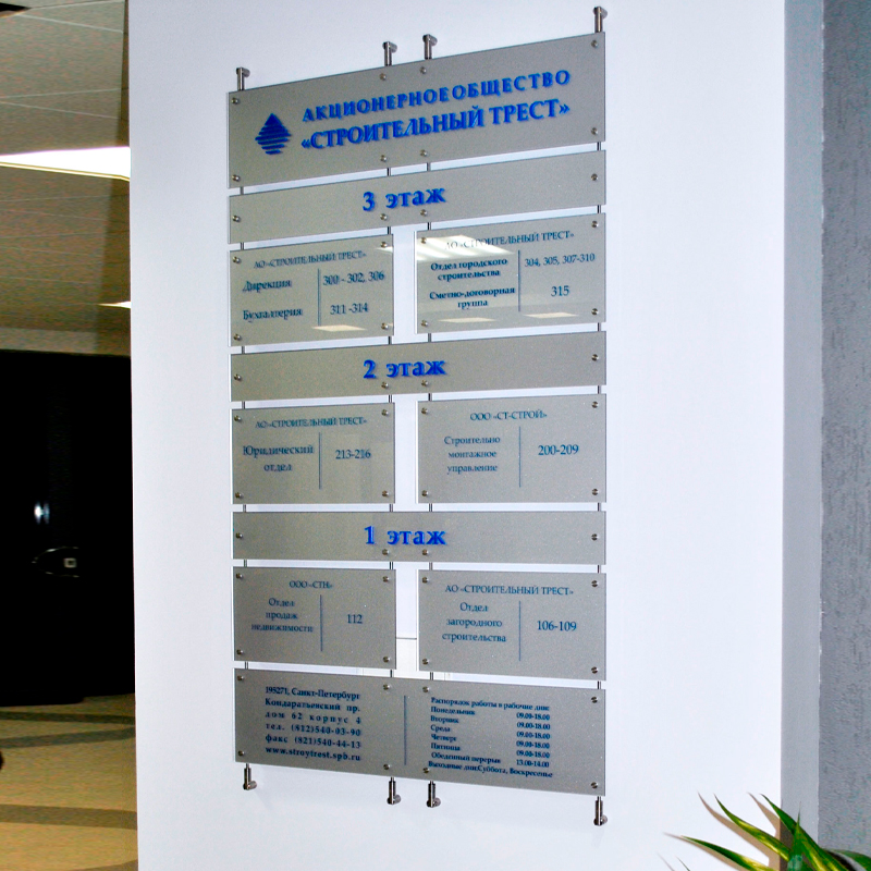 Заказать дизайн проект и изготовление табличек в Санкт-Петербурге у нас — значит, гарантированно получить индивидуальный подход и четкие сроки. Пожелания клиента могут быть любыми, но, в любом случае, наши дизайнеры сохранят деловой стиль и поместят всю необходимую информацию, проявив все свои знания и фантазию.